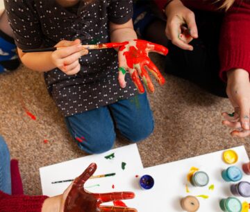 Çocuklar hayal gücünü kullanarak boyalar, hamurlar ve geri dönüştürülebilir malzemelerle özgün çalışmalar yapar.